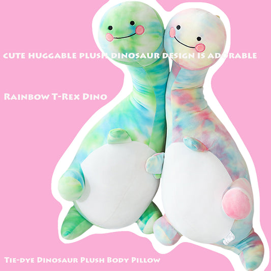 ELAINREN Big Tie-dye Dinosaur Plush Body Pillow Rainbow T-Rex Dino Stuffed Gifts/39.37''