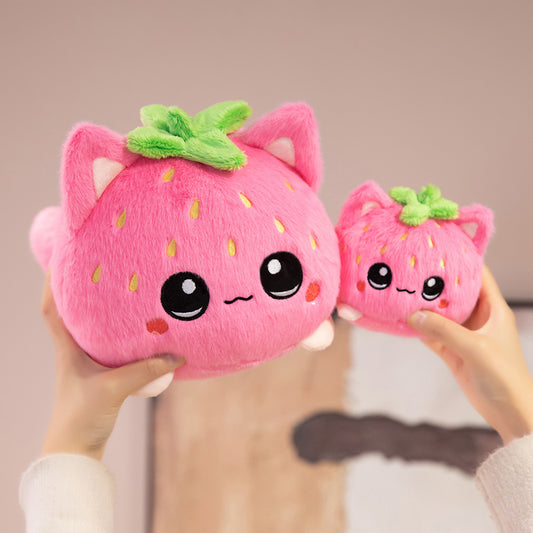 ELAINREN Cute Strawberry Cat Stuffed Pink Kitten Plush Toy Pillow