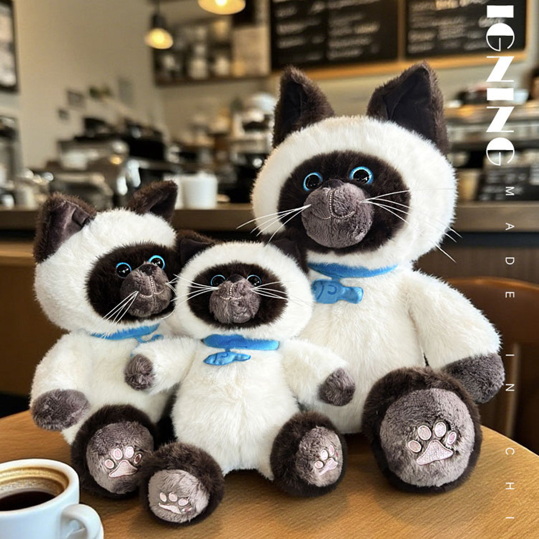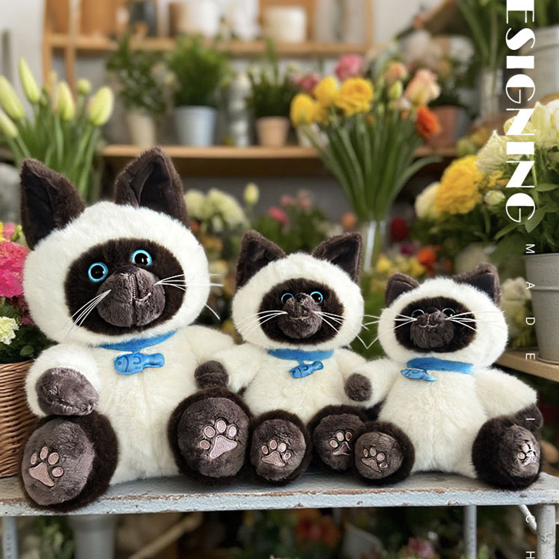 ELAINREN Cuddly Siamese Cat Stuffed Animal Toy Furry Siamese Kitten Plush Gifts/35cm