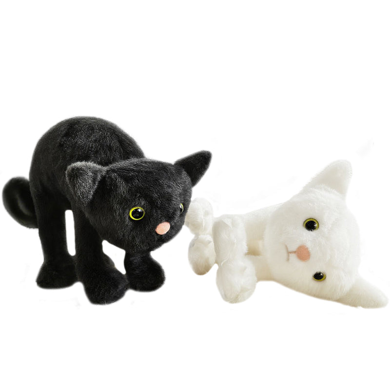 ELAINREN Kawaii Black Cat Stuffed White Kitten Plush Toy/30cm