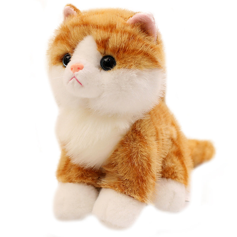 ELAINREN Sitting Orange Tabby Cat Plush Realistic Tiger Kitten Stuffed Toy/20cm