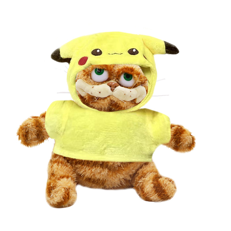 ELAINREN Kawaii Stuffed Garfield Cat Wearing PIKAQIU Costume/11.8‘’