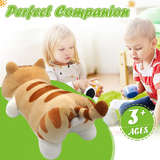 ELAINREN Soft Yellow Calico Cat Plush Hugging Pillow,Cute Orange Tabby Kitten Stuffed Cat Toy/15.7''