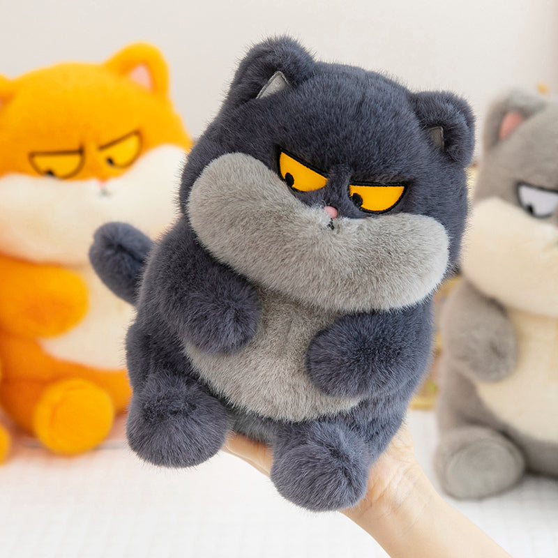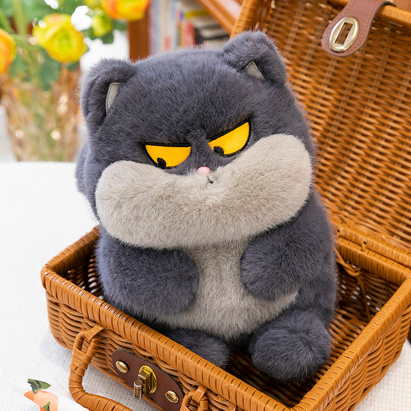 ELAINREN Chubby Furry Cat Plush Toy Cuddly Kitten Stuffed Kitten Gifts/35cm